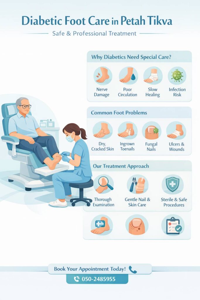 פדיקור רפואי לחולי סוכרת בפתח תקווה הוא טיפול מקצועי שמותאם במיוחד למצב הזה, תוך הקפדה על בטיחות, סטריליות וטיפול עדין.